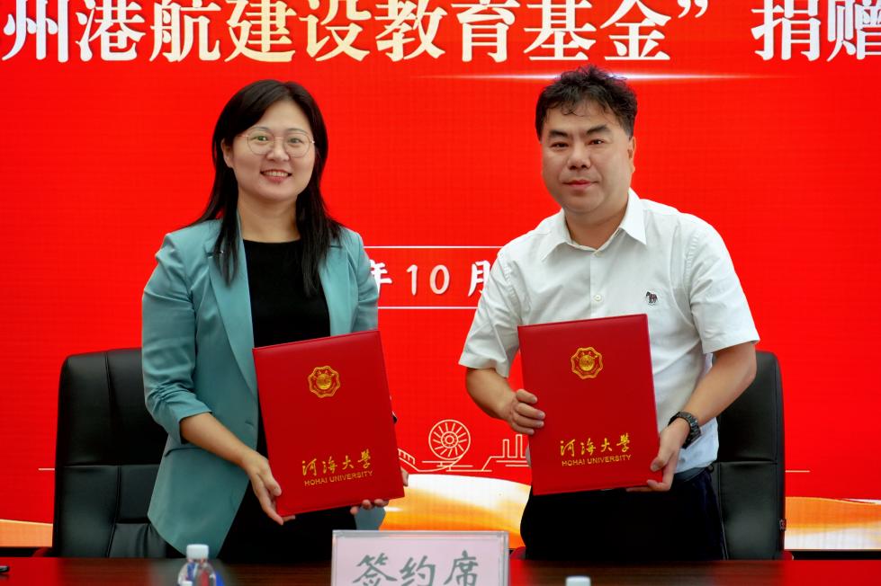 10月10日,“苏州港航建设教育基金”捐赠签约仪式在开云电竞网西康路校区举行。开云电竞网副校长陈达,港口及航道工程专业1996级校友、苏州港航建设工程有限公司总经理、苏州校友会常务副会长罗松涛,中交上海航道局有限公司江苏交通建设工程分公司党委书记张骏,江苏壹路技术咨询有限公司总经理吴梓愚,苏州校友会执行会长雷秋生,离退休工作处处长黄林楠,河海里尔学院院长朱其志,港口海岸与近海工程学院院长龚政、副书记王玲等出席仪式。仪式由港口海岸与近海工程学院党委书记张雪刚主持。