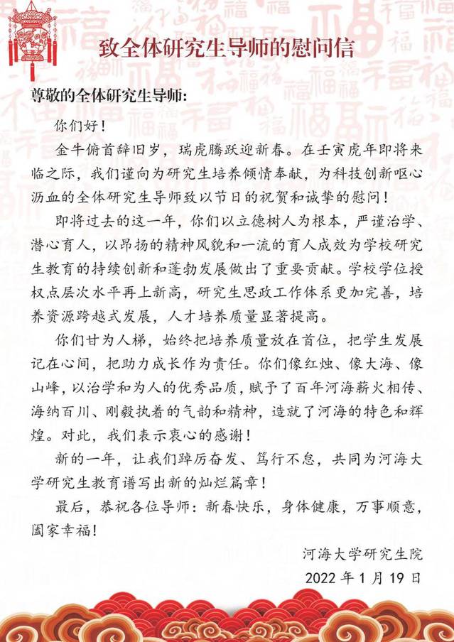 致全体研究生导师的慰问信