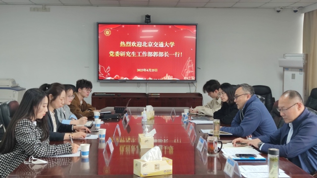 4月25日上午,北京交通大学党委研究生工作部副部长郭祎华一行来我校调研交流。校党委研究生工作部部长陈杰、副部长杜世舰、研究生教育管理办公室人员等参加座谈交流。