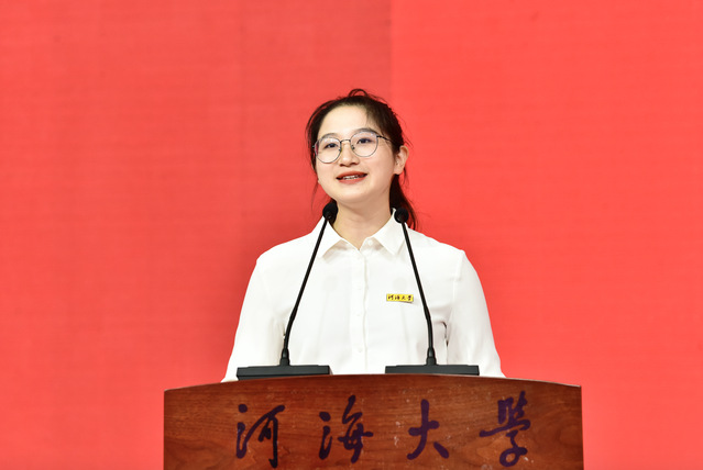 在校生代表、水利水电学院2021级硕士研究生王慧同学发言