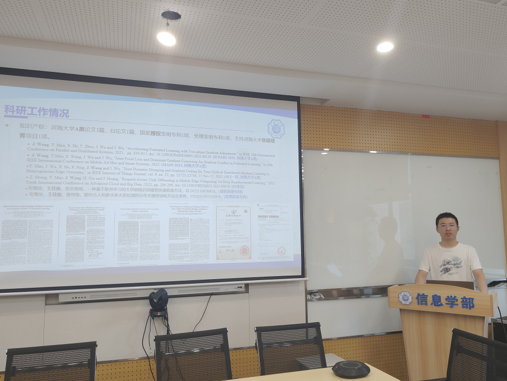 王佳俊,男,汉族,1997年9月生,中共党员,2021级计算机与软件学院计算机科学与技术专业硕士研究生,研究方向分布式计算,师从毛莺池教授。研究生期间获得硕士一阶段一等学业奖学金,硕士二阶段一等学业奖学金;2022年度优秀研究生荣誉称号;发表学术论文4篇,其中A类论文3篇;取得专利授权1项,主持开云电竞网优硕培育项目1项。