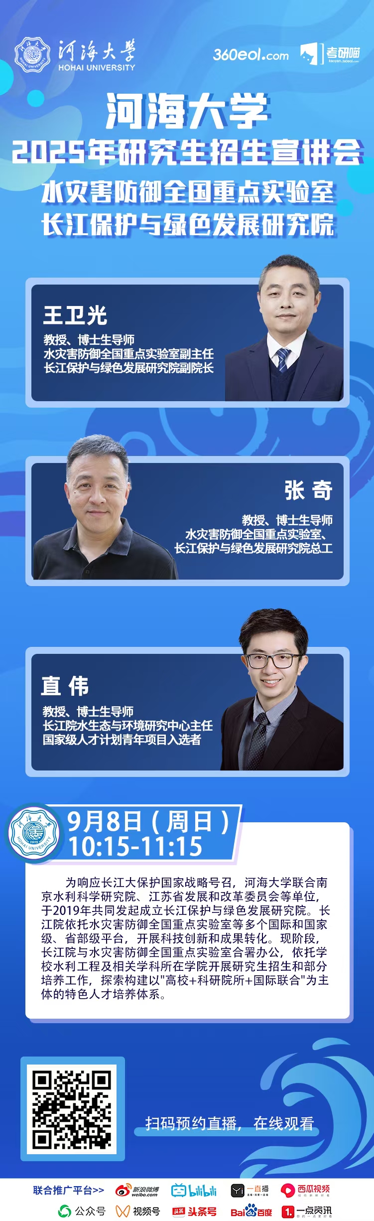 开云电竞网2025年研究生招生宣讲会——水灾害防御全国重点实验室、长江保护与绿色发展研究院专场