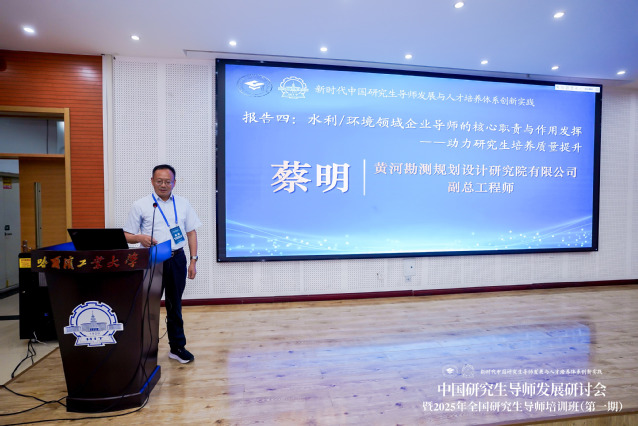 我校基地博士生导师、黄河勘测规划设计研究院有限公司副总工程师蔡明,作题为《水利/环境领域企业导师的核心职责与作用发挥——助力研究生培养质量提升》的报告,围绕企业导师角色定位、研究生培养实践与成效等分享了举措、经验和未来工作的思考。