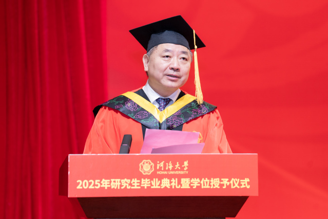 导师代表、公共管理学院院长朱新华教授向毕业研究生提出了希望,要守本心、以“水之德”涵养精神境界,立大志、以“国所需”锚定人生坐标,破万难、以“愚公志”开拓人生疆界,在时代浪潮中书写属于河海人的篇章。