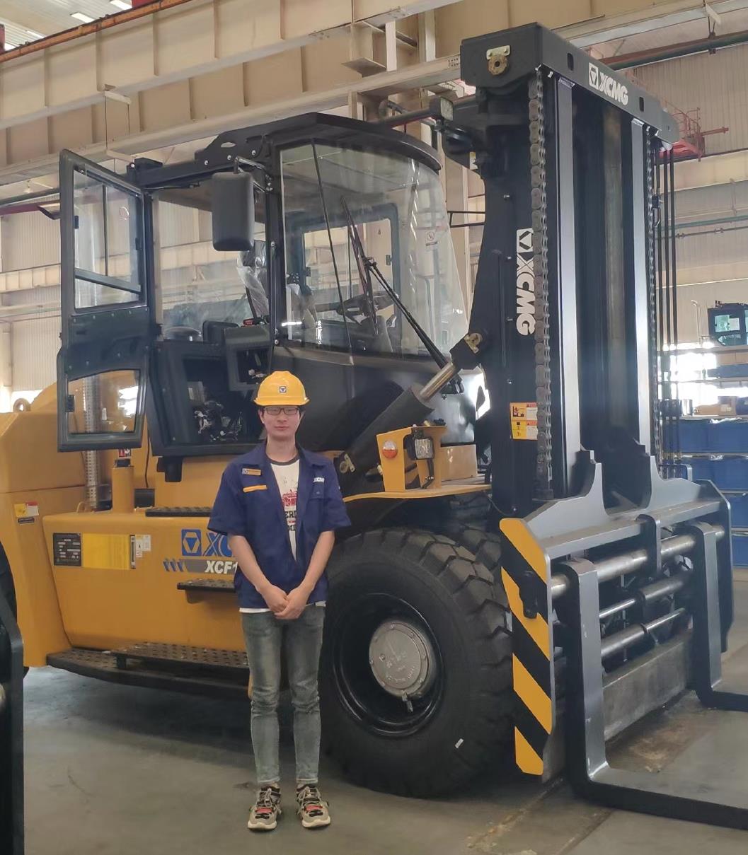 “纸上得来终觉浅,绝知此事要躬行。”将理论知识与工程实际相结合是他的最大追求。2021年周游入选了教育部“蓝火计划博士生工作团”,赴徐州徐工港口机械有限公司解决港口集装箱重型叉车的产品问题。选配博士生高层次人才走向企业内部、提升服务社会能力是“蓝火计划”的初衷,重型叉车长久以来一直被起叉时货叉架撞击内门架的冲击问题困扰,由于无法准确掌握货叉给进速度而造成货叉架滚轮成为极易损件。而研究冲击问题的周游恰好能够在此问题上大展身手,凭借自身专业知识和软件运用,他不仅探究了滚轮和内门架的受力变化规律和易损部位,而且提供了各部件应力响应和安全系数随冲击速度的拟合公式,为企业后续的设计和生产提供理论支撑。在徐工港机实践期间,他体验最深刻的是企业在产品、结构和市场上各类问题的真实需求,解决产品问题需要更加面向实际、落到实地。后来他又跟随导师参与了中船、华设等单位的多个项目,也正是在接触企业的期间让他更深入思考了对未来工作的选择。“路漫漫其修远兮”,未来还有很长的路要走,他希望能够将进一步将自己的学识投入到社会实践中。