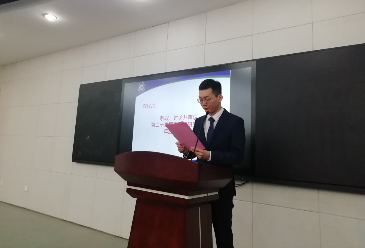 大会听取、讨论并审议通过了李阳同学代表商学院所做的《商学院第二十四次研究生代表大会筹备工作报告》和李叶钦同学代表商学院所做的《第二十三届商学院研究生会年度工作报告》。