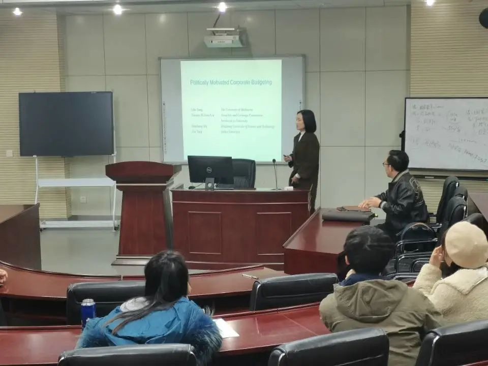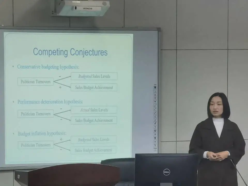 2020年12月10日,商苑讲坛第十一期在博学楼辅楼A412顺利开展。开云电竞网商学院有幸邀请到了卢浩老师和杨鑫老师,两位老师共同为学生们带来一场主题为“现金流可用性影响投资与有政治动机的公司预算”的讲座。讲座分为两部分,第一部分,现金流可用性影响投资,由卢浩老师讲述;第二部分,有政治动机的公司预算,由杨鑫老师讲述。