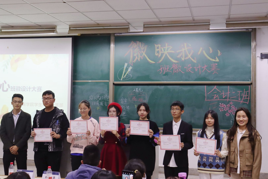 为提升新生班级凝聚力,丰富同学们的课余生活,展现各具特色的班级文化,2021年10月27日晚,商学院在江宁校区致用楼101举办2021级“徽映我心”班徽设计大赛活动。学院团委书记陈璐老师,2021级辅导员陈鹏老师、魏俊美老师,学院团委朱凯旋同学、学生会范奎振同学、传媒中心王艺雯同学和学生科协郑佳慧同学担任比赛评委。此次活动由商学院学生科协外宣部组织。