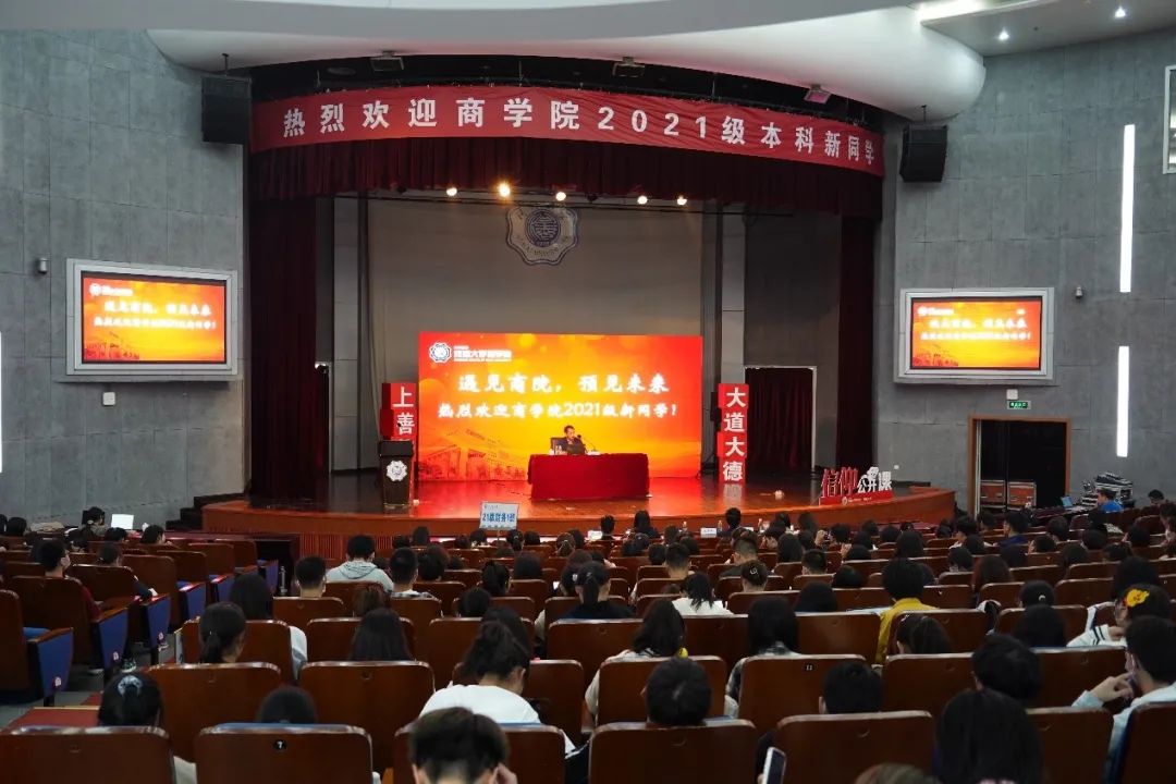 周海炜院长以“遇见商院,预见未来”为题向2021级本科生讲授了第一课。周院长从商学院的教育发展历程、战略定位、机构设置、本科专业、本硕博培养模式和国际交流等方面向同学们详细介绍了我院的相关情况,帮助新生深入了解我院的历史沿革、发展现状和未来的发展方向。周院长提到,商学院为同学们提供了良好的发展平台和发展资源,详细介绍了职业发展与就业服务中心、三创空间、国际教育中心、校友与合作发展办公室、案例与课程开发中心等学生服务机构,以及各类实验室、智慧教室等。