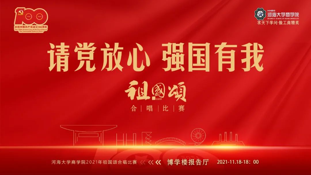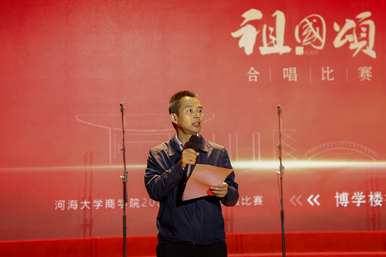 商学院党委书记吴宝海老师为本次比赛致辞,吴书记在致辞中提到:今年,我们迎来了建党百年的伟大历史时刻,商学院积极响应党史学习教育的重要讲话和指示精神,开展了一系列形式多样的党史学习教育。本次“请党放心 强国有我”祖国颂合唱活动,商学院学生用一首首赞歌讲述党的百年历程,表达对祖国的深情挚爱,这既是爱国主义教育的大型品牌活动,也是党史学习教育主题教育的重要安排,也特别感谢学校各职能部门对本次活动的支持与指导。吴书记勉励同学们,认真学习贯彻十九届六中全会精神,增强“四个意识”、坚定“四个自信”、做到“两个维护”,践行初心使命,紧密团结在以习近平同志为核心的党中央周围,真抓实干,开拓创新,为把河海建设成世界一流特色研究型大学,为实现“两个一百年”奋斗目标,实现中华民族伟大复兴的中国梦而不懈奋斗!