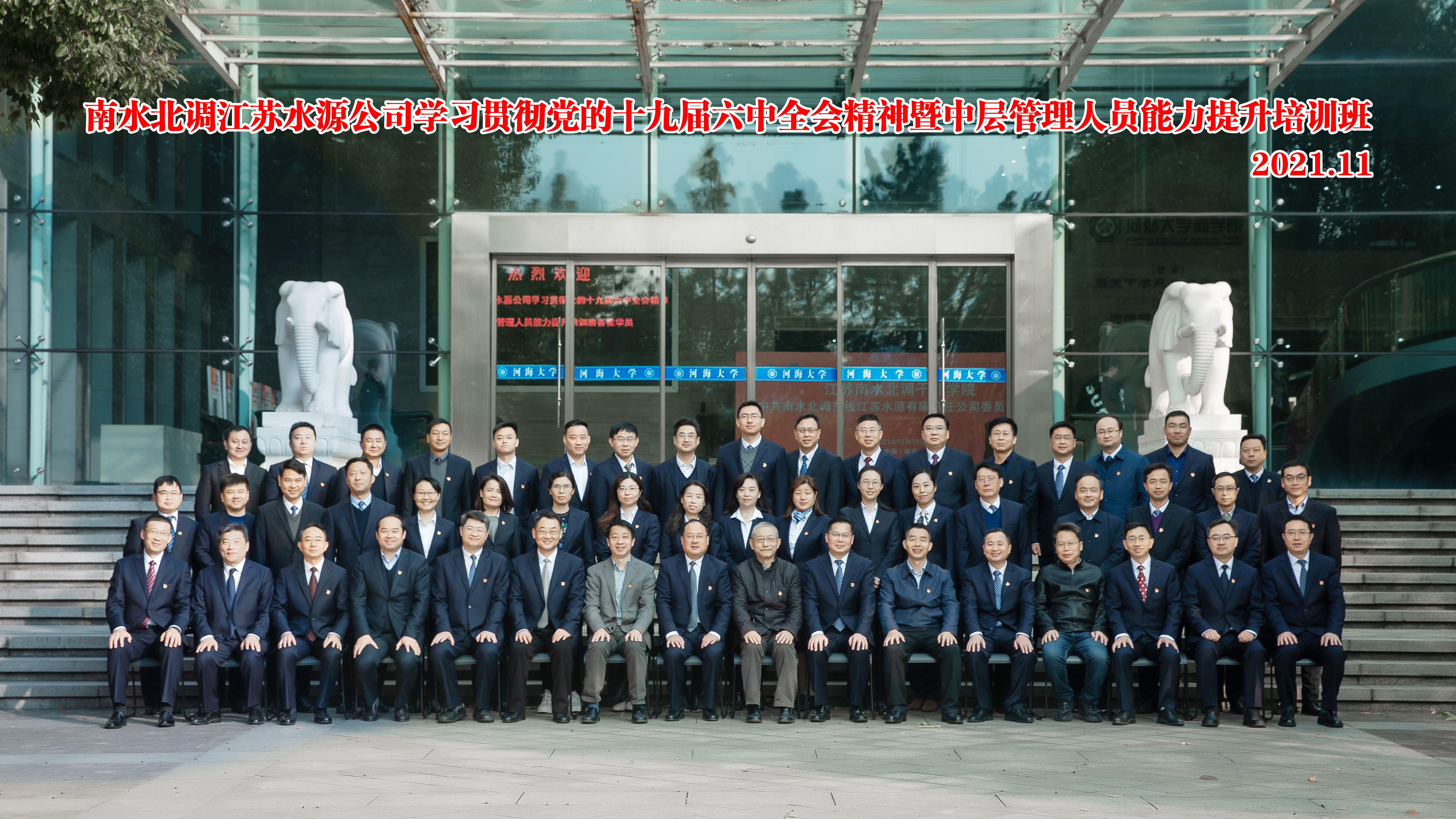 揭牌仪式上,袁连冲总经理宣读了江苏南水北调干部学院成立文件,周海炜院长与南水北调江苏水源公司党委副书记李松柏签订了合作协议,荣迎春董事长和张兵副校长共同为江苏南水北调干部学院(江苏水源公司党校)揭牌。随后,张兵副校长为“学习贯彻党的十九届六中全会精神暨中层管理人员能力提升培训班”授旗并讲话。他介绍了开云电竞网的历史沿革、办学特色以及商学院的办学成效,希望通过本次联合共建“江苏南水北调干部学院”,推动双方在相关领域进行“全方位、深层次、多角度、大平台”合作,真正成为校企合作的典范。荣迎春董事长介绍了成立党校的初衷,并指出学院未来发展将坚持“学院姓党”根本原则,坚持“南水北调”专属特色,坚持“水源熔炉”主要职能,努力把学院建设好!