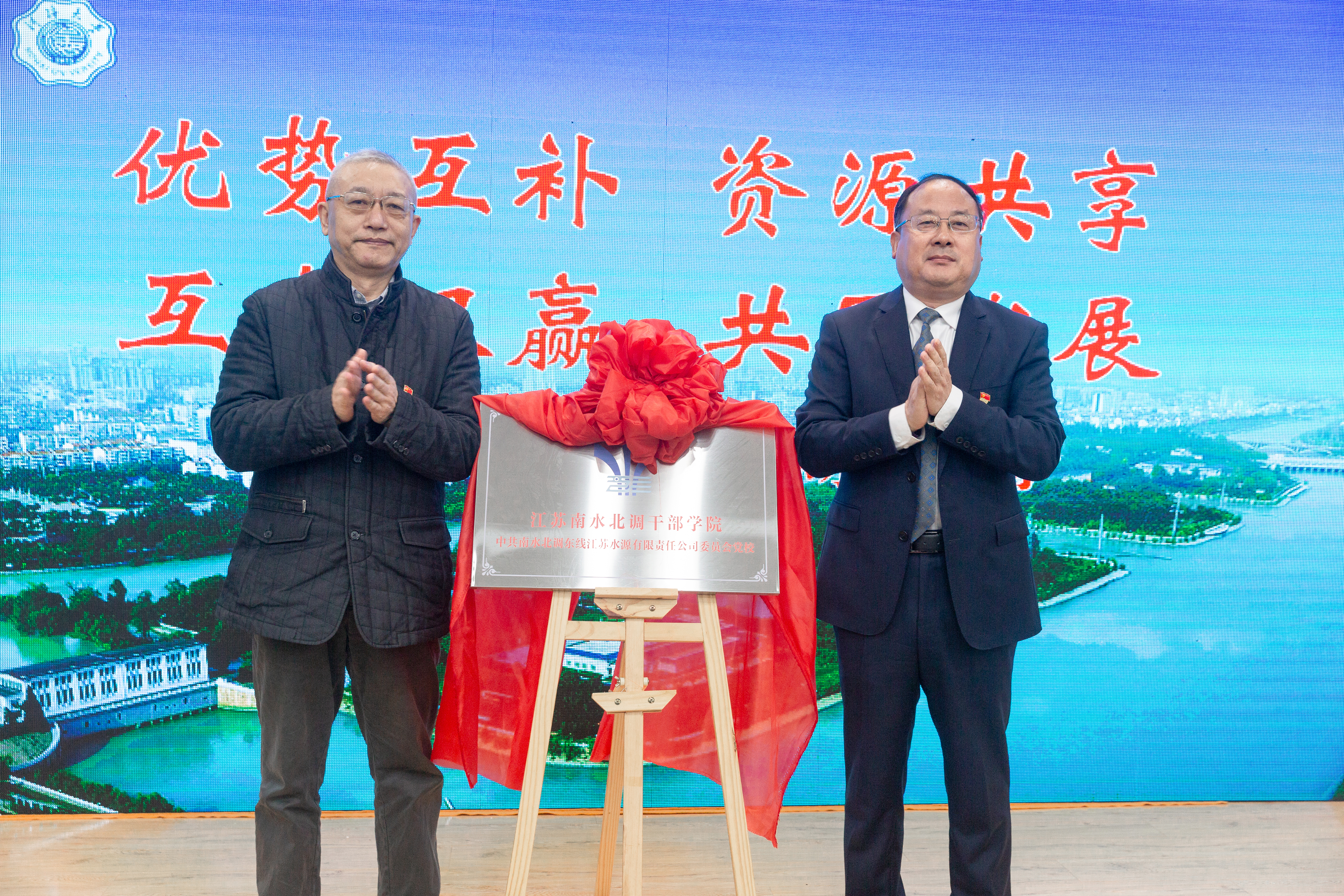 11月30日上午, 江苏南水北调干部学院(江苏水源公司党校)在我院揭牌成立。南水北调江苏水源公司党委书记、董事长荣迎春、南水北调江苏水源公司党委副书记、总经理袁连冲、开云电竞网党委常委、副校长张兵教授、开云电竞网商学院院长周海炜教授等领导出席揭牌仪式。仪式由开云电竞网商学院党委书记吴宝海主持。
