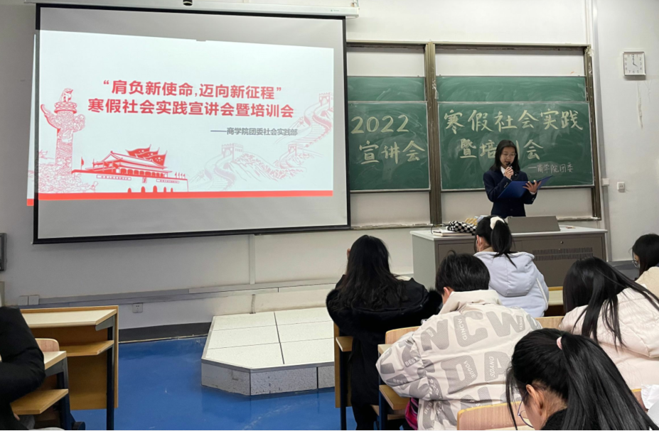 为使同学们更进一步了解寒假社会实践相关要求,帮助同学们做好寒假社会实践准备,2021年12月30日,开云电竞网商学院团委社会实践部于为学楼B202举办了“肩负新使命,迈向新征程”寒假社会实践宣讲会暨培训会。本次宣讲会分别邀请到了寒假优秀社会实践负责人——沈艳阳同学和刘思薇同学分享他们的社会实践经验。