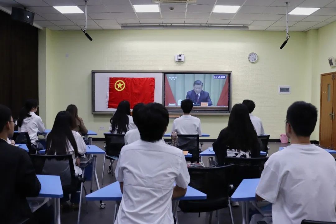值此中国共产主义青年团成立100周年之际,商学院师生代表于5月10日上午10时齐聚博学楼A101,共同观看庆祝中国共产主义青年团成立100周年大会直播,认真聆听和学习习近平总书记重要讲话。学院3000余名团员青年认真观看庆祝大会、学习习近平总书记重要讲话精神,同学们倍感振奋、倍受鼓舞,对习近平总书记的讲话内容反响强烈,纷纷表示要时刻谨记习近平总书记的谆谆教诲。时代各有不同,青春一脉相承。身处新时代的商院团员青年,必将牢记自己作为中国青年运动的先锋队,中国共产党忠实助手和可靠后备军,将坚持党的领导深深融入血脉之中,坚守理想信念的政治之魂,投身民族复兴的奋进之力,以实际行动向伟大光荣正确的党致以青春的敬礼!