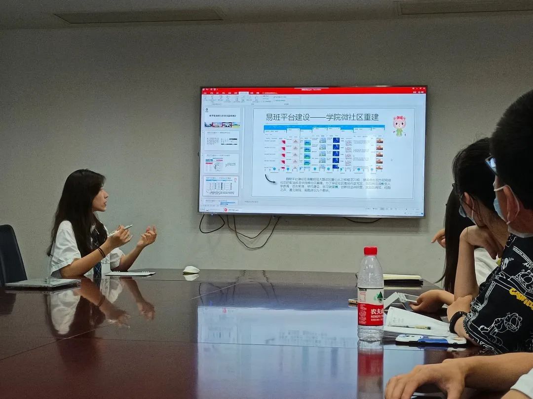 为进一步提高学院传媒中心易班工作室成员的工作技能和综合能力,更好地发挥易班工作室的作用, 6月8日,易班工作室交流培训会在江宁校区博学楼主楼301会议室开展。本次交流会邀请到校易班工作站彭芷靖、黄文琪、陈昊进行经验分享,学院辅导员魏俊美老师、易班工作室全体成员参加。