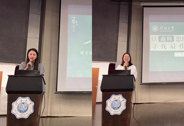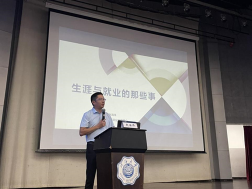 首先,赵海伟老师从自己的生涯规划经历出发,引导同学们思考学习目的及未来目标。在专业学习与职业发展的联系上,指出同学们需要实现被动选择—主动选择—认同选择三个阶段的跃升,商学院学生应保持专业自信,将专业背景作为职业发展的支撑。在生涯规划方面,同学们应综合价值观念、家庭背景、个人能力多维度展开生涯规划,调整人生定位。在就业规划方面,同学们应全面了解自我、掌握多方信息、发挥自我潜能展开未来决策。
