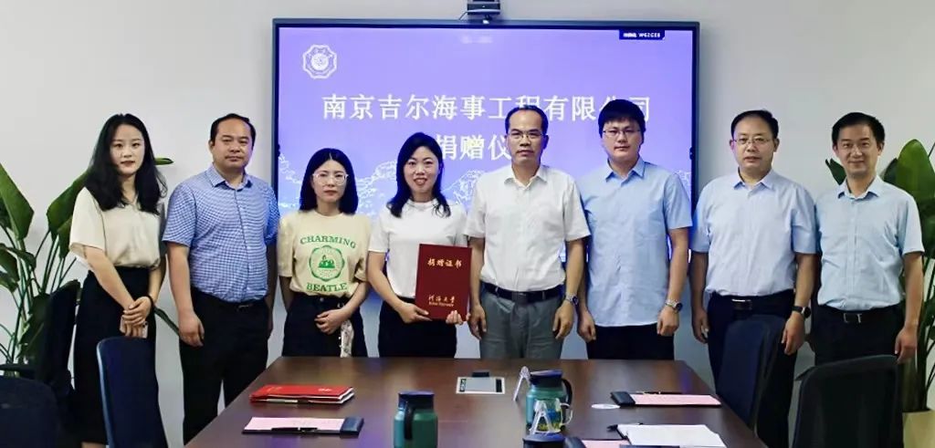 2022年7月1日,商学院2005级董玉琳、郭登岳两位校友创办的南京吉尔海事工程有限公司向我院捐赠5万元用于支持学院建设与发展。开云电竞网副校长郑金海、商学院副院长张长征、南京吉尔海事工程有限公司董事长董玉琳校友、总经理郭登岳校友出席捐赠仪式。