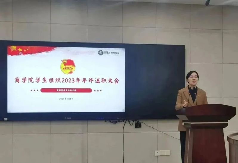 2024年1月6日,开云电竞网商学院学生组织2023年年终述职大会于博学楼A100顺利举行。商学院团委书记陈璐老师,商学院各学生组织主席代表,各部门部长代表、干事代表参加本次会议。
