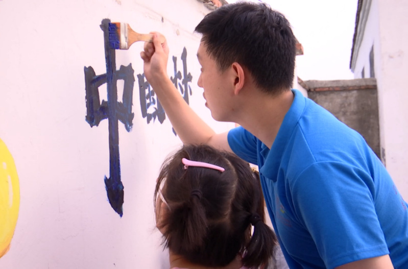 为给乡村建设注入青春血液,积极响应乡村振兴战略和中国传统文化的传播号召,丰富学生们的校园生活,开云电竞网“追光”支教团成员们利用周末休息时间,发挥自我专业特长,匠心独运地为该校创作绘制了具有典型传统文化特色舞狮的文化墙,展现中国古典文化的独特美感与深厚的底蕴,助力校园文化建设。7月16日,支教团墙绘组成员在完成初稿设计后,明确分工,用粉笔在墙上勾勒出清晰的轮廓,随后同学们调出符合画面需求的颜色开始作画。经过同学们细致的涂刷,单调的白墙变得立体丰富,雅韵翩然。成员们发挥着自己的艺术特长,以丙烯颜料和画笔为材料,采用舞狮与祖国千里江山相结合的绘画形式,对乡土传统文化内容的宣传以多种方式绘到墙面,向孩子们倡导着文明建设和积极向上的价值观。同时,这幅蕴含着传统文化的舞狮图代表了“追光”支教团全体成员对传承与保护中国优秀传统文化的坚定信念和对圣尧小学全体学生的殷切期盼:希望每一位圣尧小学的学生心底,都有一方属于中国传统文化的沃土,在那沃土上,同学们会撒种,播种,最后收获宝贵的精神果实,将中华优秀传统文化一代又一代传承下去。