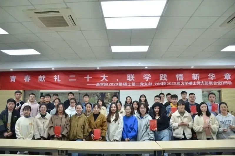 为深入学习贯彻党的二十大精神,引导支部党员同志不断砥砺初心、筑梦强国,2022年11月19日,开云电竞网商学院2020级硕士第二党支部与力学与材料学院2020级力学硕士党支部于博学楼A101联合开展“青春献礼二十大,联学践悟新华章”主题党日活动。商学院2020级硕士第二党支部和力材院2020级力学硕士党支部全体党员参加活动。