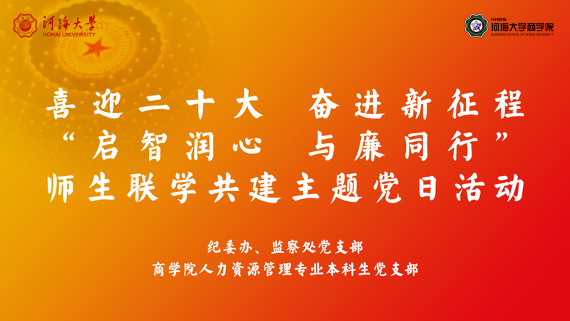 9月21日,纪委办、监察处党支部与人力资源管理专业本科生党支部围绕“启智润心,与廉同行”主题开展了师生联学共建活动。本次活动由纪委办、监察处党支部尹虔颀书记主持,商学院党委副书记戴媛媛、纪委办、监察处党支部和人力资源管理专业本科生党支部党员参加。