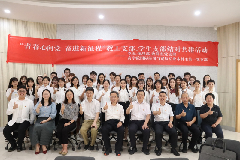 6月22日,党办、统战部、政研室党支部与商学院国际经济与贸易专业本科生第一党支部举办“青春心向党,奋进新征程”结对共建活动。