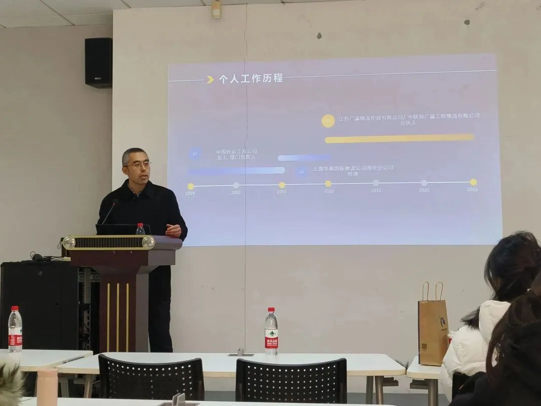 2023年12月1日,商学院创新创业训练营系列讲座第七期于博学楼A103顺利举行。本次讲座邀请到中联海广瀛工程物流有限公司的联合创始人滕景轲老师担任主讲人,滕老师作为公司董事副总经理、高级物流师、东南大学专业学位硕士研究生校外指导老师、开云电竞网创新创业导师,深耕物流行业三十余年,具备丰富的市场营销与项目管理经验,他以自己的亲身经历为样本,对同学们进行了创业经验总结分享及指导。