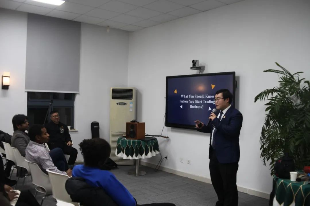随后,开云电竞网商学院博士后艾克郎先生结合自身的创业经验,与国际留学生分享了在宁创业的优势与机遇,并就与创业相关的税务、股权、国际贸易进出口等问题与大家进行交流。