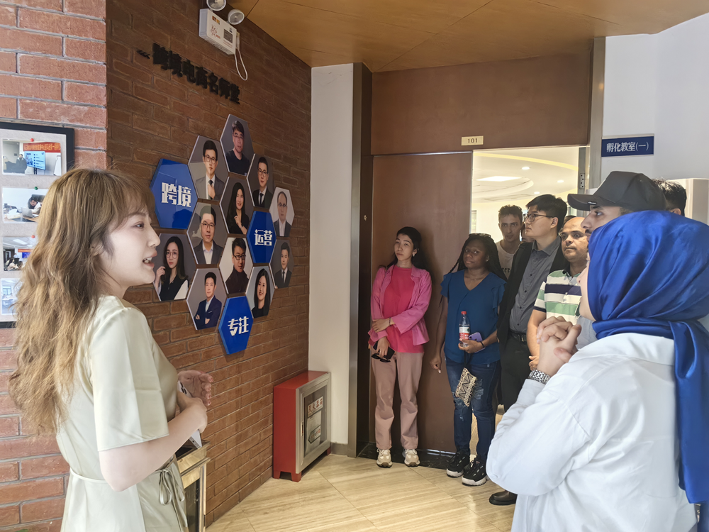 活动伊始,长三角跨境电商创新发展中心的工作人员带领同学们参观发展中心,介绍了中心的发展历程和创新服务等内容。参观过程中,发展中心的工作人员重点向同学们展示了中心先进的服务理念和成熟的运营模式,并且详细讲解了跨境电商B2B2C业务模式流程以及发展中心“运营载体+,产业孵化+,人才支撑+,资源服务+”的服务体系。通过参观介绍,同学们不仅深入了解了跨境电商的发展现状和未来趋势,更感受到了跨境电商的魅力和挑战。