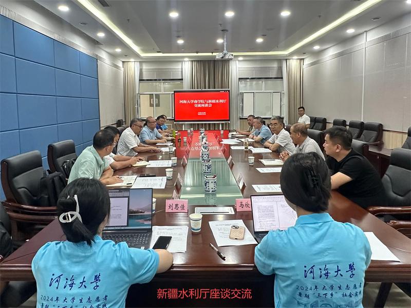 8月5日、6日,学院党委书记陈杰,副院长张长征、张可一行前往新疆维吾尔自治区先后走访新疆水利厅、新疆水发集团和新疆水利水电勘测设计研究院等单位。在新疆水利厅,杜丙照副厅长与学院师生开展座谈交流,深入了解新疆发展、水资源概况、未来水利规划,重点了解新疆对于治水人才的需求情况。在新疆水利发展投资(集团)有限公司,水发集团党委副书记、董事陈军介绍了集团组建及发展情况、在建及运营水利工程情况,双方表达了对河海学子未来能投身新疆水利建设的殷切期望。在新疆水利水电勘测设计研究院有限责任公司,学院师生一行观看了公司宣传片、了解新疆水资源开发利用技术,就新质生产力如何赋能新疆水利高质量发展同与会专家展开交流,并对新疆水利人才以及商科管理人才需求进行了沟通探讨。