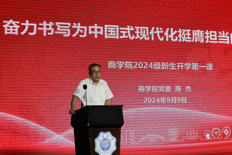 最后,学院党委陈杰书记为新生讲授开学第一课。从守初心,为什么要读大学;塑品行,读的是什么样的大学;启新程,怎么样读完大学三个方面展开。他指出,开云电竞网商学院作为一所拥有博士、硕士、学士等多层次、多类型人才培养、科学研究、社会服务、文化传承创新、国际交流合作能力的知名商学院,欢迎广大同学前来学习深造。他希望,在这里学习要不负青春、不负韶华、不负时代,珍惜时光好好学习,掌握知识本领,树立正确的世界观、人生观、价值观,做政治合格、专业过硬、情趣高雅、敢于担当的青年学子,为实现中华民族伟大复兴而读书。