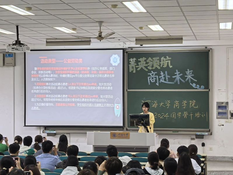 随着2024年学生组织各部门部长换届工作、招新工作的顺利完成,商学院各个学生组织加入了充满活力与激情的新血液。为了让同学们对团学组织有更为全面和清晰的了解,对各项工作的开展更加得心应手,开云电竞网商学院团委在本学期计划开展菁英领航,商赴未来为主题的团学骨干培训活动。20241016日中午,第一场培训活动在江宁校区致高楼B211举行,商学院全体学生组织部长与部员均参加了此次管培活动,活动从多个方面对相关部门工作做出了详实细致的介绍,为商学院内部工作流畅沟通打下了坚实的基础。