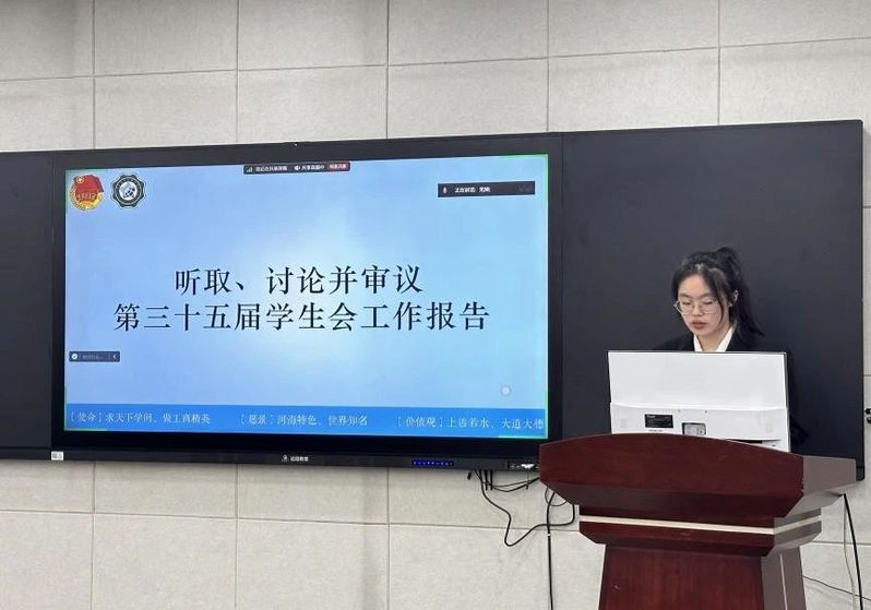 商学院学生会第三十五届主席团成员陈雪阳同学做了题为《承前启后筑新梦,踔厉奋发谱华章》的工作报告。她总结了在过去的一年中商学院学生会取得的优异工作成果:商学院学生会始终注重商院学生的思想引领,通过多点开花,亮点纷呈,面上结果的活动架构力求加强商学院学风建设。此外,商学院学生会以且思且行,且悟且进为行为准则,时刻反思自我,充分发挥干部主观能动性,推动组织建设。同时,陈雪阳同学也对开云电竞网商学院学生会做出以下展望,一是要筑牢思想基础,持续深化改革;二是强化服务意识,为学生权益“发声”;三是创新工作模式,保持组织特色;四是强化对外交流,开放包容新格局。