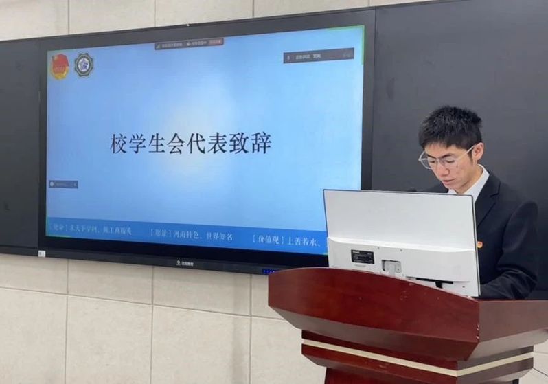 大会开始,校学生会主席团成员孙昊同学代表校学生会为本次大会致辞。他指出,商学院学生会积极举办丰富多彩的系列活动,以卓越的成绩向学院和学校交出了一份精彩的答卷。荣誉和辉煌属于过去,前行之路任重而道远,更应不忘初心、牢记使命,奋力书写商学院学生会的光荣与梦想。为此,他提出三点心得体会:一是筑牢信念基石,涵养家国情怀,练就过硬本领,勇担时代重任;二是搭建温暖桥梁,延续服务之光,用心沟通,用情奉献;三是加强改革创新,勇立时代潮头,增强学院品牌影响力与打造创新性项目齐头并进。最后,孙昊同学也对各位代表提出了期望与呼吁,希望新一届学生会聚焦主业服务同学,锐意改革、勇于担当、敢于创新,让青春在全面建设社会主义现代化强国的伟大实践中绽放绚丽之花。