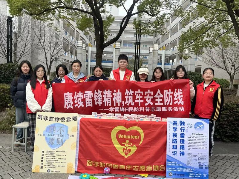阳春三月,春风送暖,2025年3月5日,在学雷锋日之际,商学院团委志工部分别在开云电竞网江宁校区和南京新街口商业广场开展了一场意义非凡的民防科普志愿服务活动,为在校学生和广大市民朋友科普实用的金融知识和民防安全知识。