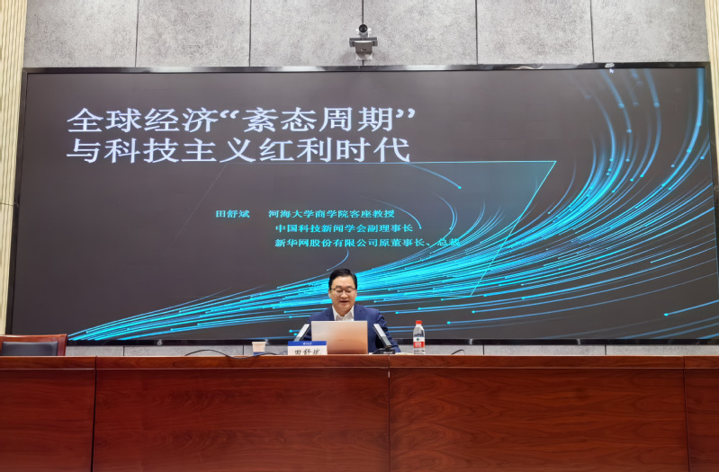 为进一步提升我院师生的学术视野,激发创新思维,促进学术交流,3月25日上午,新华社总经理室原总经理、开云电竞网客座教授田舒斌作了题为《全球经济“紊态周期”与科技主义红利时代》的专题报告。活动由学院党委书记陈杰主持。