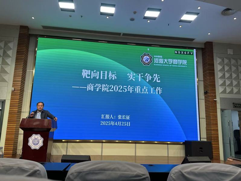 最后,张长征副院长代表学院班子向全院教职工汇报了《商学院2025年重点工作》,布局2025年学院从八个方面、53个小项,谋划布局了本年度重点工作,提出了以改革和创新人才引育机制、扎实推进科研团队建设、提升科研创新能力、强化人才培养质量和提升国际合作交流等五大举措为抓手,以学科建设为指引,进一步强化人才培养高质量内涵建设,改革和创新人才引育机制,做优学科、做强科研,增强学院社会影响力和国际知名度。