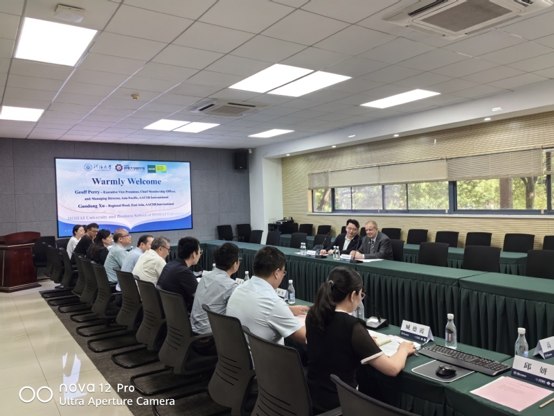 6月5日,国际商学院协会(AACSB)执行副总裁、全球首席执行官兼亚太区执行董事Geoff Perry教授与东亚区负责人徐国栋先生莅临我院,就AACSB国际认证工作进行专题指导。我院领导班子、部门负责人及认证办公室全体成员参加交流。