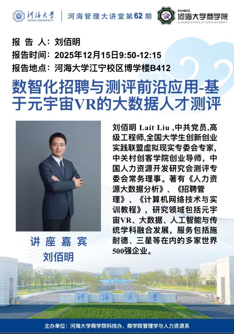 讲座通知:数智化招聘与测评前沿应用-基于元宇宙VR的大数据人才测评