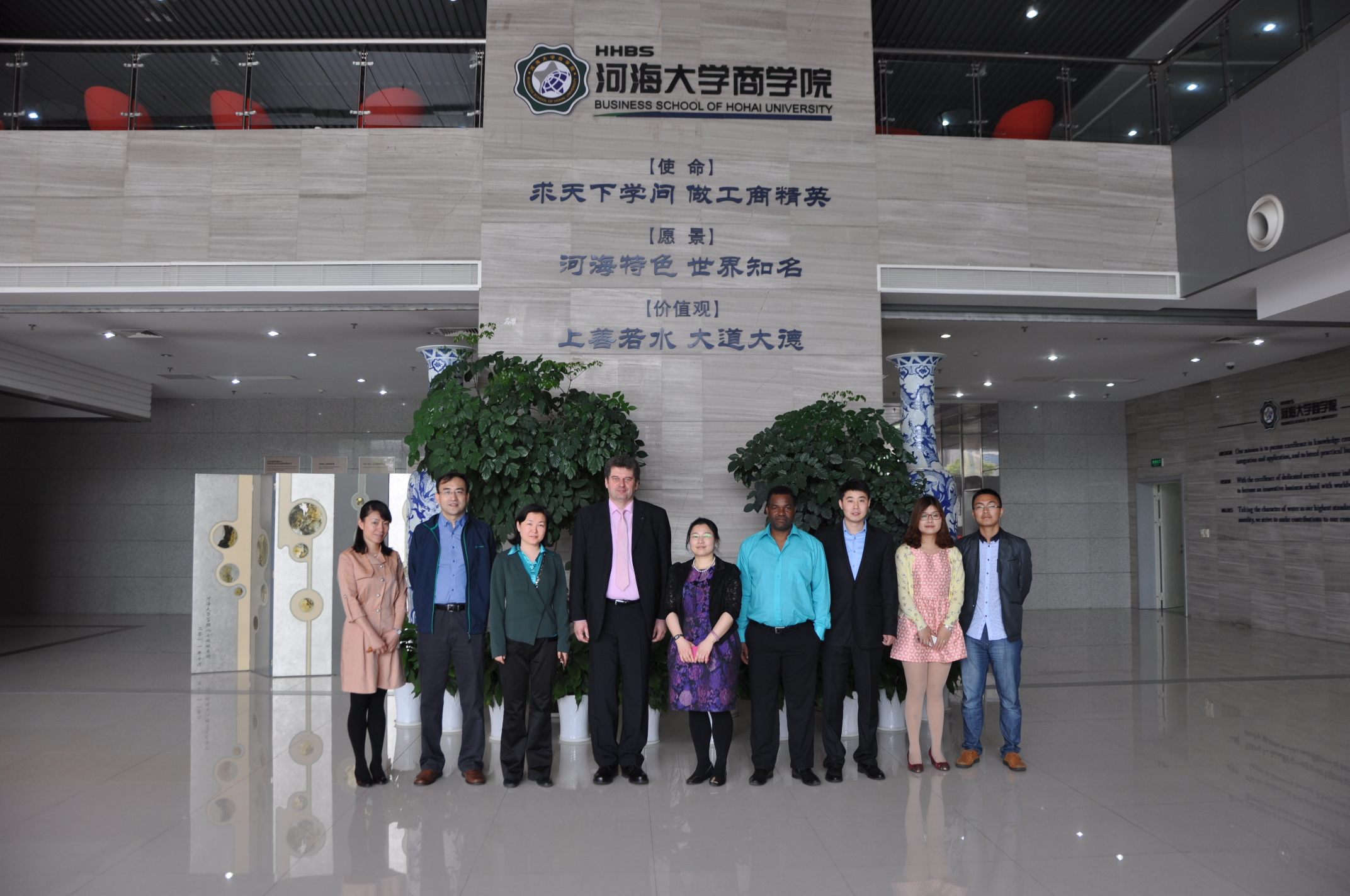 On April 29, Prof. Thomas Rauschenbach, Dr. Divas Karimanzira from Fraunhofer, and Mr MU Hong, Representative for Production and Information Technologies of Fraunhofer Visited HHBS. Dr. TANG Zhen, Associate Dean of Business School of Hohai University, Dr. HUA Jian, Associate Professor from Department of International Trade and Economics met them in Boxue Building.