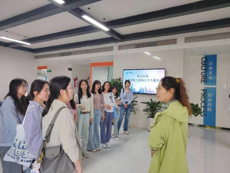 The participating teachers and students visited Guanghua Science and Technology Industrial Park under the guidance of the staff of the Youth League Working Committee of Yueyahu Street, to understand the development process, planning layout, and enterprise settlement of the industrial park. The park is dominated by digital industries such as e-commerce and the Internet of Things, and currently has 161 settled enterprises. It has won honors such as Jiangsu Provincial University Science and Technology Park and Jiangsu Provincial E-commerce Demonstration Base.