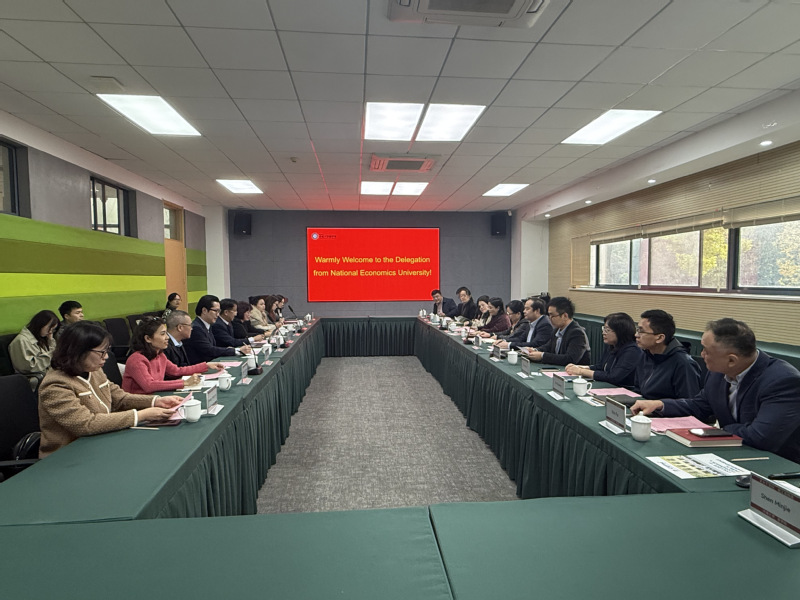 On November 12th, a delegation of nine members from National Economics University, Vietnam (NEU) led by Ruan Yushan, Vice Dean of the School of Economics and Public Administration, and Fan Shilong, Deputy Director of the International Cooperation Office, visited our school. Zhang Changzheng, Dean of Business School, Wu Yao, Deputy Director of International Cooperation Office, and Zhang Hengjie, Vice Dean of Business School met the guests.