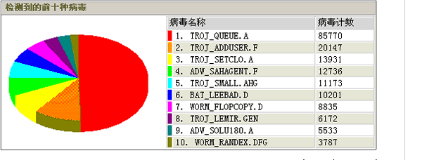 检测到校园网内客户机感染的前十种病毒,请大家注意病毒防护!