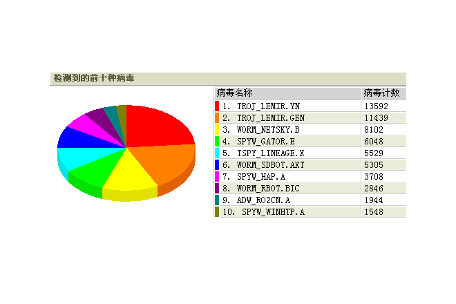 本周趋势防毒墙检测到的前十种病毒,请大家注意防护!