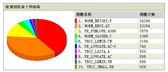 本月趋势防毒墙检测到的前十种病毒,请大家注意防护!