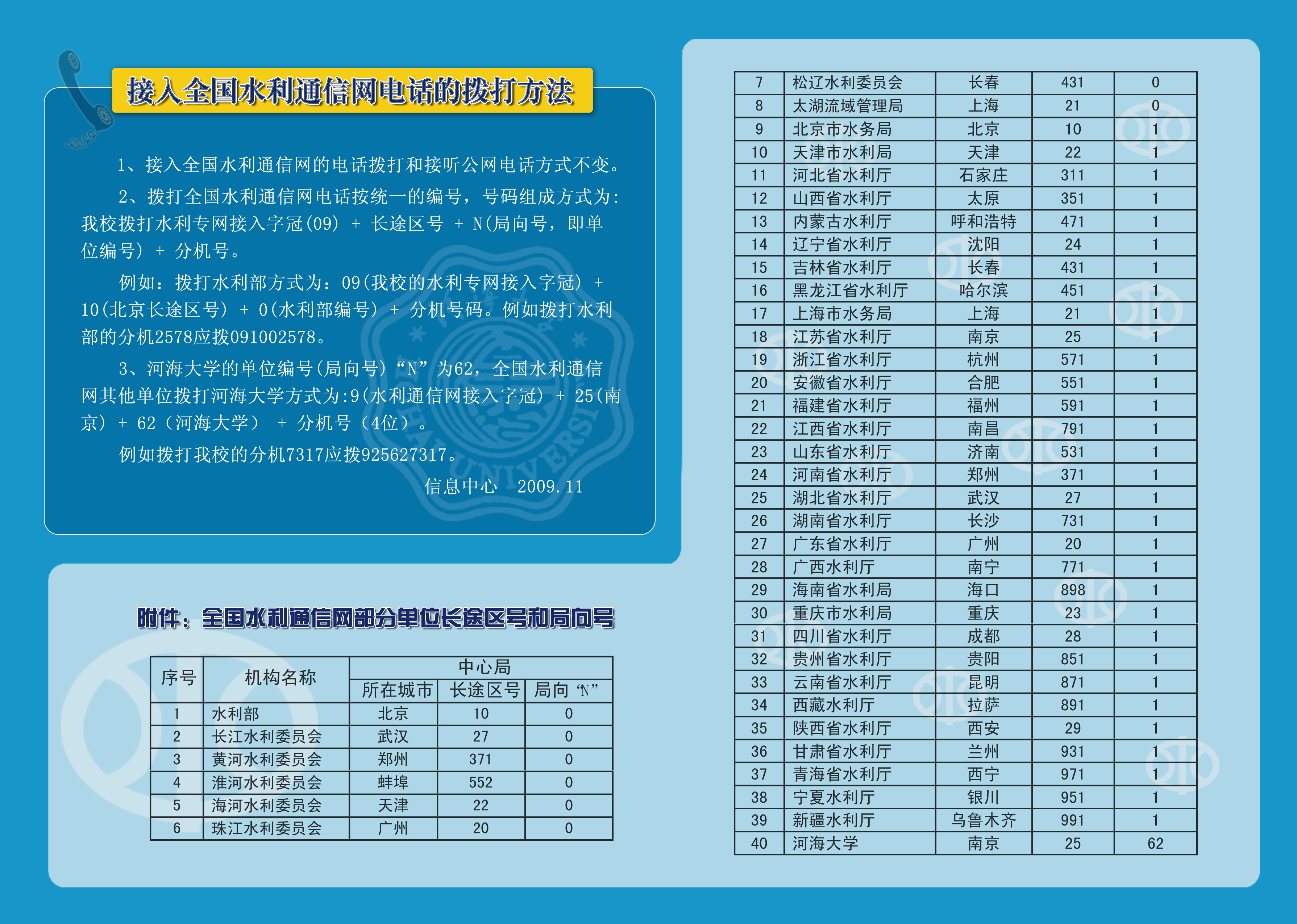 接入全国水利通信网电话的拨打方法