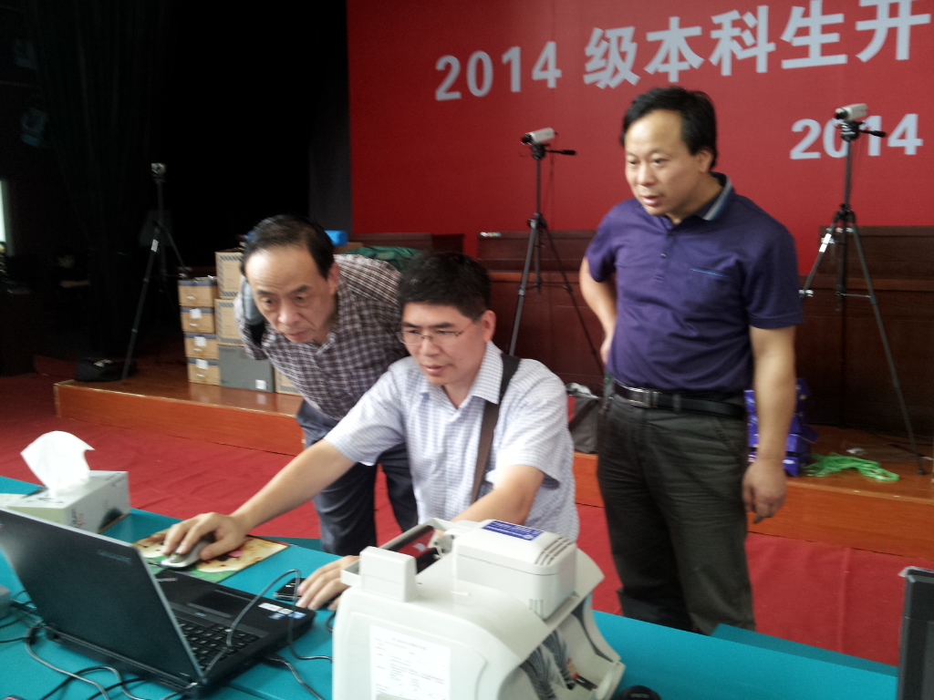 面对以上新情况,信息中心于9月1日召开迎新会议,会上卞主任强调要切实做好解决新情况新问题的准备,保障迎新工作顺利进行,再次布置和落实迎新工作以及讨论应急方案。8月31日下午,网络部相关工作人员到江宁文体中心篮球馆对迎新网络进行了部署。9月1日下午,召开了迎新系统培训会议,对所有参与迎新工作的部门进行了迎新系统的培训,让所有参与迎新的工作人员了解并熟练使用该系统。9月2日上午,卞主任带领各部门负责人到迎新现场巡视,检查每一个迎新点的网络是否通畅以及迎新系统是否正常运行,及时解答迎新工作中的系统使用问题和解决突发网络故障。9月2日下午,迎新工作正式开始,信息中心的老师一直在迎新现场,解决迎新时突发的网络及系统问题。现在,迎新工作正在有条不紊的进行中。
