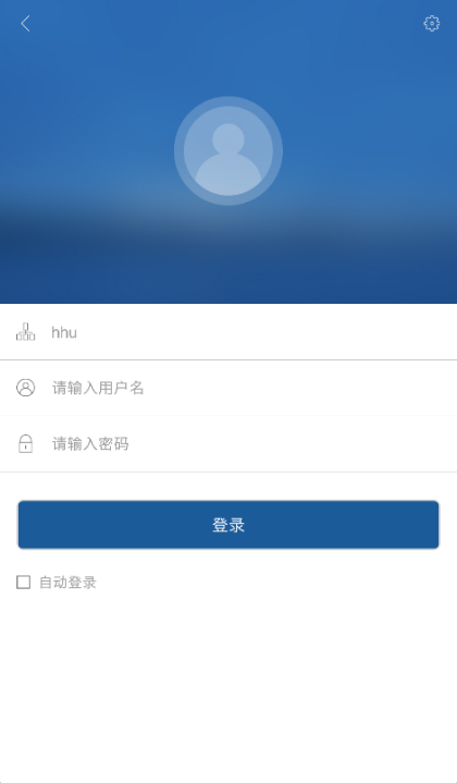 手机客户端登录:下载手机客户端,打开显示登录页面,出现以下界面,输入系统默认域名:hhu,输入信息门户用户名、密码后点击登录可登录到系统。
