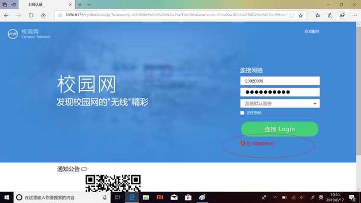 问题2:使用职工号/学号登录认证系统时,显示“无可用剩余时长”。