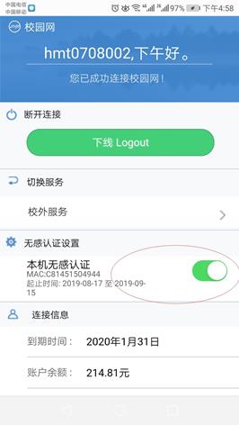 1)为了账户的安全使用,无感知服务使用30天后,系统会解除设备和账户的绑定,用户30天后需要重新登录并再次打开无感认证服务。
